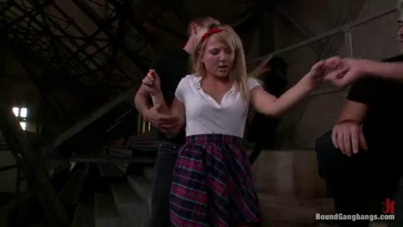 Жесткое порно: четверо парней на складе трахают связанную студентку! Сучка с купюрами в трусах ловит члены в ротик, а ее узкие дырочки разрабатывают жестко и безжалостно. Они не оставляют шансов на пощаду, только грубый секс и стоны от удовольствия!